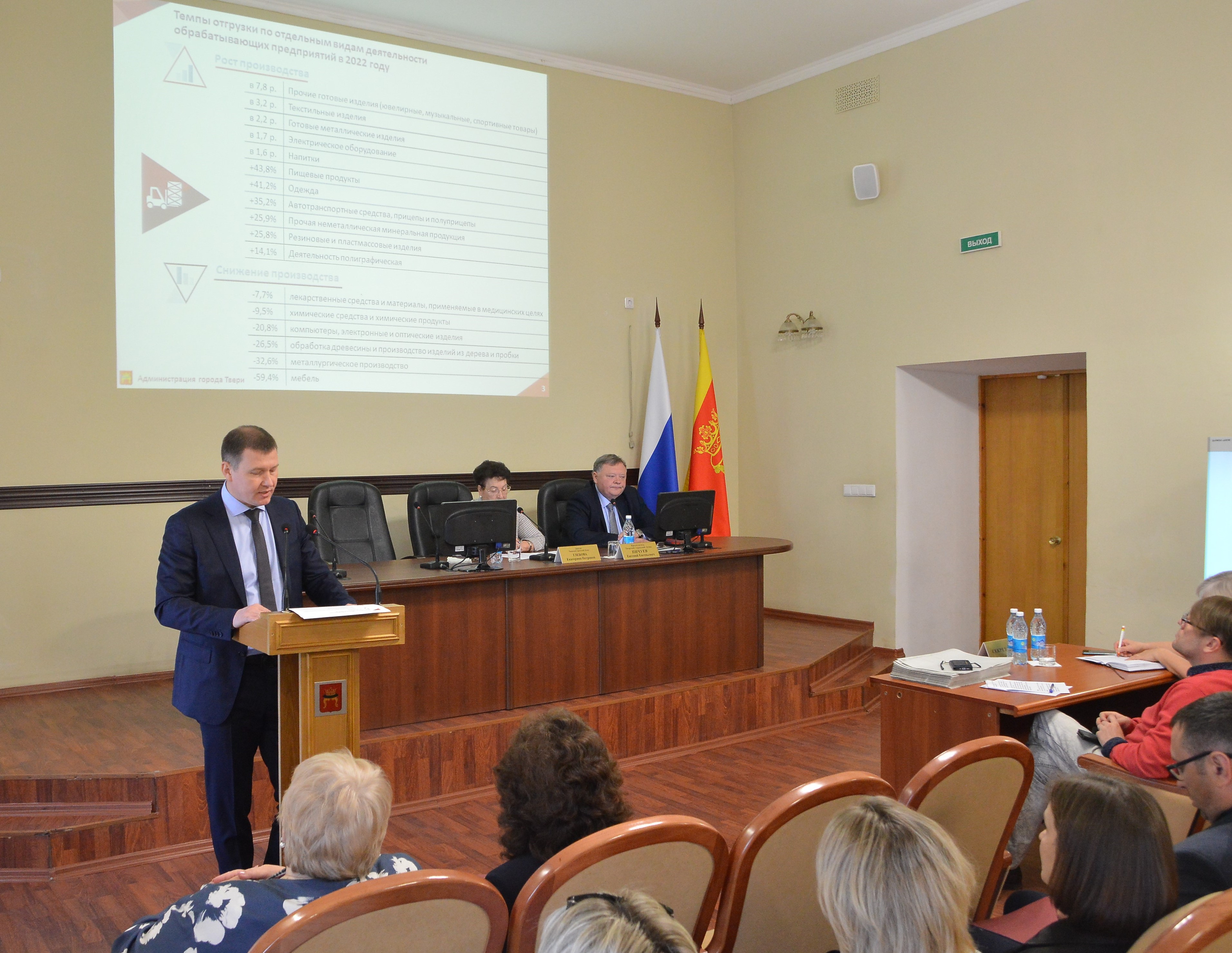 Участие в слушаниях приняли председатель Тверской городской Думы Евгений Пичуев, председатель Общественной палаты города Твери Вадим Рыбачук, представители общественных организаций, жители города. С докладом об общих показателях социально-экономического развития, исполнении прогноза социально-экономического развития и муниципальных программ Твери в 2022 году перед собравшимися выступил заместитель главы администрации города Андрей Гаврилин.