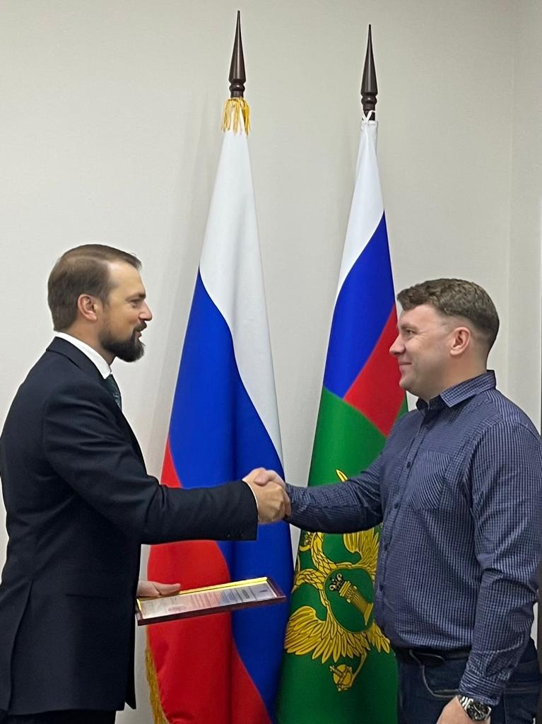 Начальник Управления Минюста России по Тверской области Евгений Орловский вручил свидетельство о государственной регистрации Президенту клуба Михаилу Матвееву.