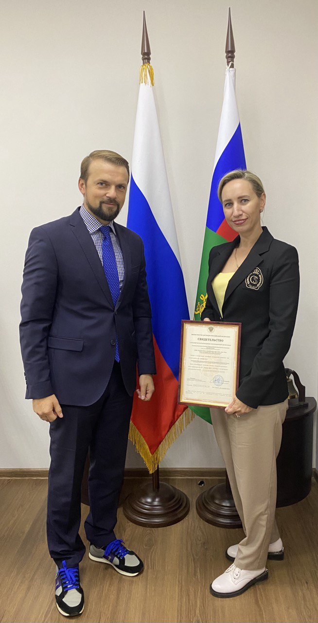 Начальник Управления Минюста России по Тверской области Евгений Орловский вручил свидетельство о государственной регистрации учредителю регионального отделения Виолетте Генал.