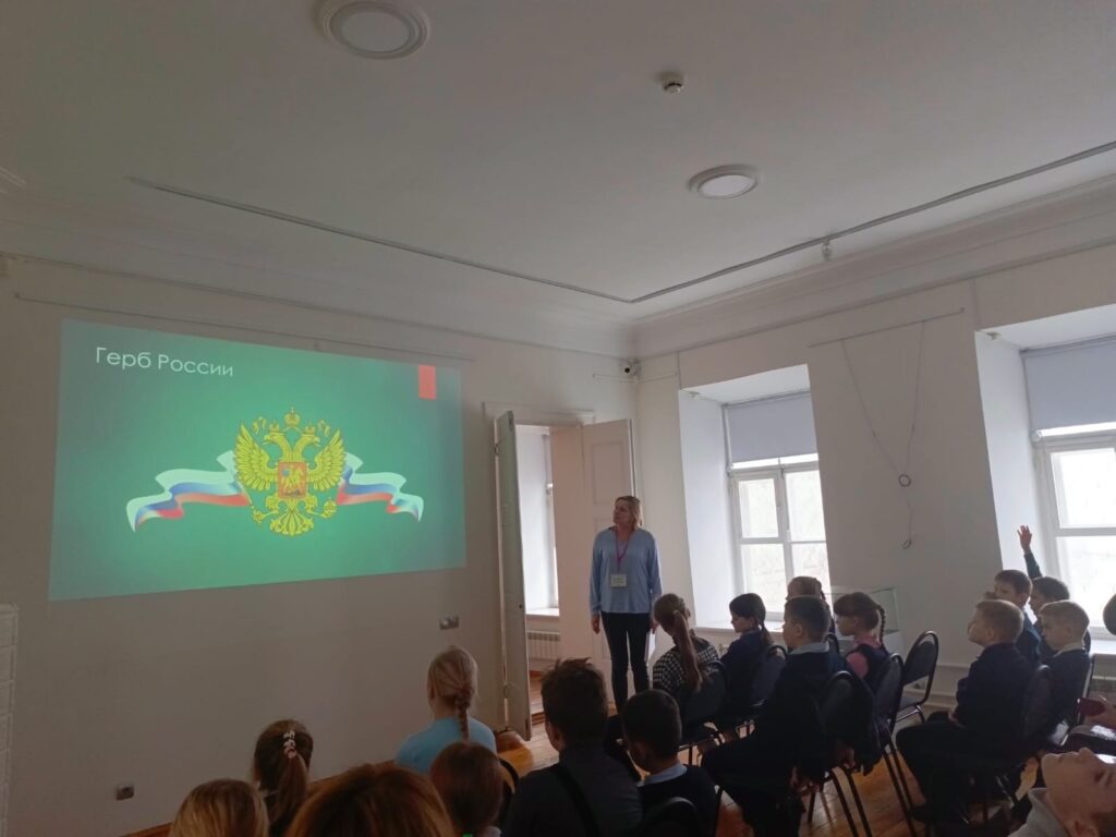 В Доме России для школьников Торжка музейные сотрудники провели лекционное занятие «Будь гражданином», на котором рассказали о Конституции, познакомили с главными государственными символами России: гербом, гимном и флагом.