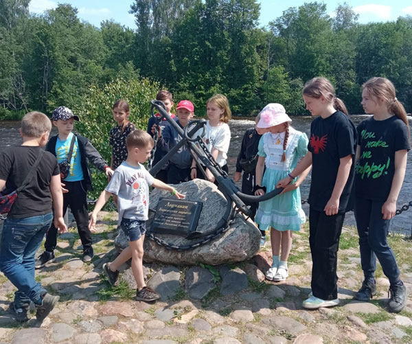 Музей Боровичских порогов погрузил экскурсантов в Петровские времена, искусство прохождения порогов, нелёгкий и филигранный труд лоцманов. Своими руками ребятам можно было потрогать остатки гидротехнических сооружений, старинные якоря, причальные кавы, а также увидеть настоящее украшение музея - большой адмиралтейский якорь XVIII века весом 240 килограммов, найденный в реке Мсте.