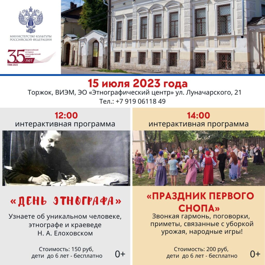 Ко Дню этнографа Всероссийский историко-этнографический музей приглашает гостей и жителей города познакомиться с Николаем Елоховским, выдающимся этнографом и краеведом, увлеченным педагогом и исследователем, жившим в Новоторжском уезде в первой половине ХХ века. Также поговорить о непростой крестьянской доле, трудолюбии, усердии хлеборобов, о традициях празднования первого дня жатвы в поле на интерактивной программе «Праздник первого снопа».