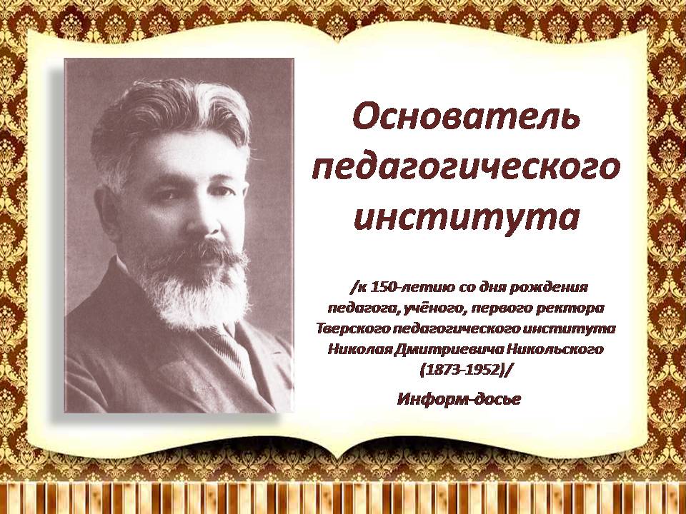 Предлагаем вам информ-досье «Основатель педагогического института», посвящённое жизни и педагогической деятельности Н.Д. Никольского.