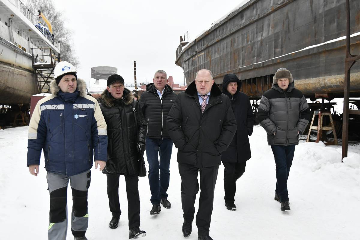 Также парламентарии побывали на еще одном производственном объекте Кимрского муниципального округа – ООО «Белогородская судоверфь». Сегодня на заводе работают порядка 100 человек. Есть свой технический отдел, который занимается доработкой рабочей документации под условия верфи и сопровождением. Завод оказывает услуги по комплексному ремонту ДРК, проводит дефектацию судов методом неразрушающего контроля - ультразвуком. В среднем за год на предприятии ремонтируется около 40 судов различного назначения (баржи, буксиры, сухогрузы, теплоходы).