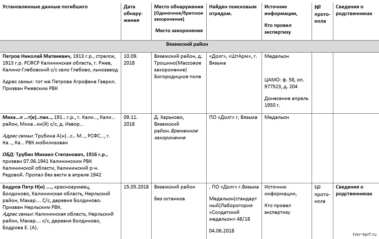 установленные в ходе поисковых работ в Смоленской области и восстановленные в ходе криминалистической экспертизы "Вахта памяти - 2018-2023"