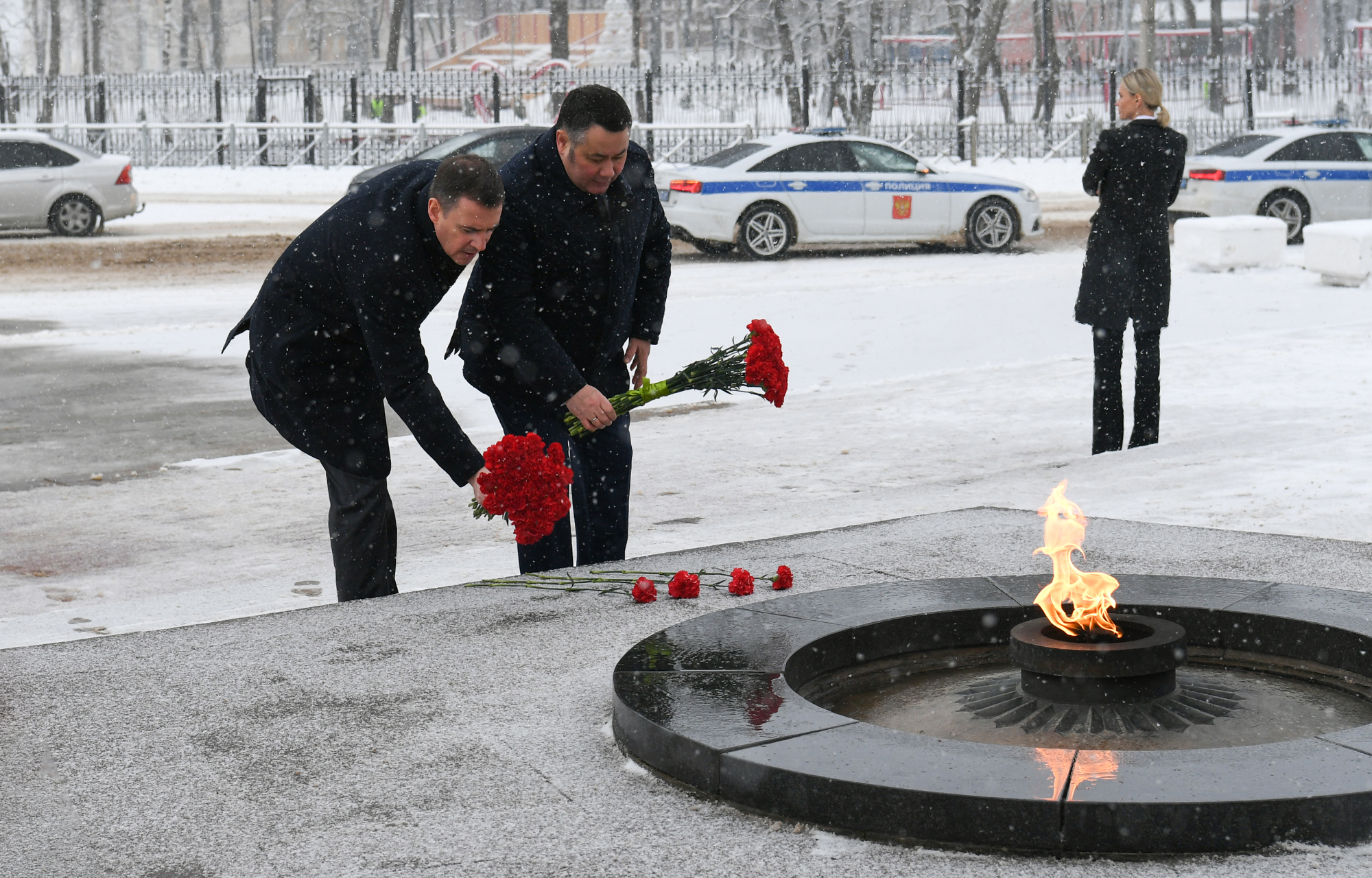 В Бежецке министр сельского хозяйства РФ Дмитрий Патрушев и Губернатор Игорь Руденя возложили цветы к Обелиску Победы