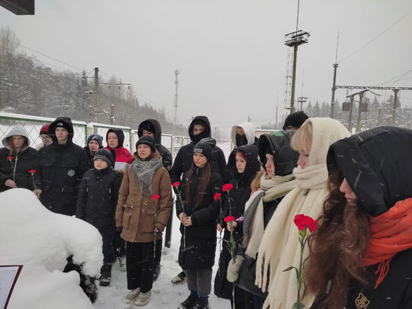 Учащиеся Лыкошинской школы-интерната провели акцию у поклонного креста, установленного на месте трагедии: возложили цветы и почтили память погибших минутой молчания.