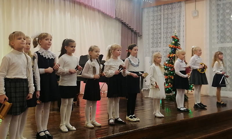 Струнное отделение представили: Екатерина Вергасова, Екатерина Круглова – скрипка; Егор Зинченко, Алиса Черных – виолончель; струнное трио в составе Александры Искриной, Алисы Осиповой и Валентины Жоховой. Отделение народных инструментов представили: Сергей Громов, Василина Киселева, Алиса Тихомирова, Семен Соколов и Иван Девятко – гитара. От фортепианного отделения выступали: Анна Брусницына, Софья Довлятова, Артем Чибичев, Даниил Ельников; так же на сцене был дуэт «ученик + учитель» Ангелина Горшкова и Анастасия Андреевна Котова. В исполнении хора 1-го класса прозвучали интересные детские песни «На лошадке» и «Новый год к нам пришел». Хоровое отделение также представили солисты: София Белозерова, Раиса Ростунова, Виктория Горькова, Екатерина Комиссарова, Софья Довлятова и Лев Петров. Фольклорное отделение представила Маргарита Федосова и ансамбль «Зеленые ботинки», состоящий из особенных детей с ОВЗ. Одним из самых ярких номеров концерта стало выступление «Ансамбля ложкарей». В исполнении учащихся прозвучали русские народные песни «Посмотрите, как у нас-то в мастерской» и «Барыня».