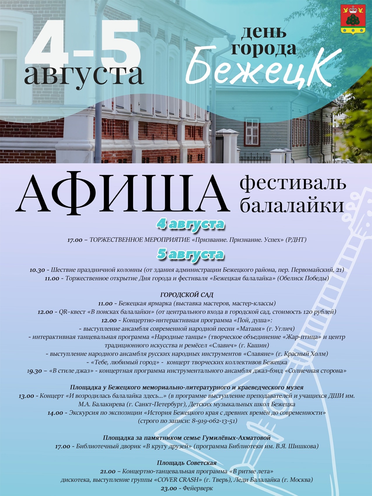 День города Бежецк и фестиваль «Бежецкая балалайка». Афиша