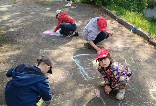Праздник продолжился рисованием на асфальте цветными мелками. В детских рисунках можно было увидеть природу, друзей, родных и близких людей. Все рисунки были разными, но объединены одной общей темой «Счастливое детство».