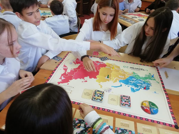 Главная задача, которую предстояло решить школьникам, «Спасти свою страну от экологических катастроф». Разобраться в правилах увлекательной настольной игры участникам помогали волонтёры «Молодой гвардии», студенты Государственного университета управления - Ирина, Анна, Аделина и Екатерина.