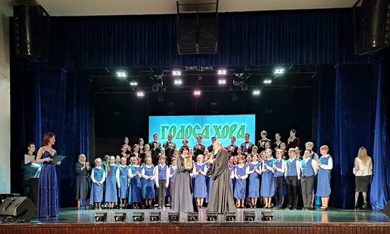 Благочинный Кимрского церковного округа, настоятель Преображенского собора, протоиерей Евгений Морковин вручил благодарственные письма: сводному хору им. священномученика Феодора Колерова в составе учащихся ДШИ №2 и ДШИ №3 (руководитель Вера Владимировна Голубева, хормейстер Ирина Владимировна Федосова, концертмейстер Наталья Вячеславовна Солнышкова); народному коллективу «Академический камерный хор» ГБПОУ «Тверской музыкальный колледж им. М.П. Мусоргского» (руководитель Любовь Вячеславовна Иванова, концертмейстер Александр Евгеньевич Захурко) за подготовку и проведение просветительского музыкального проекта «Голоса хора».
