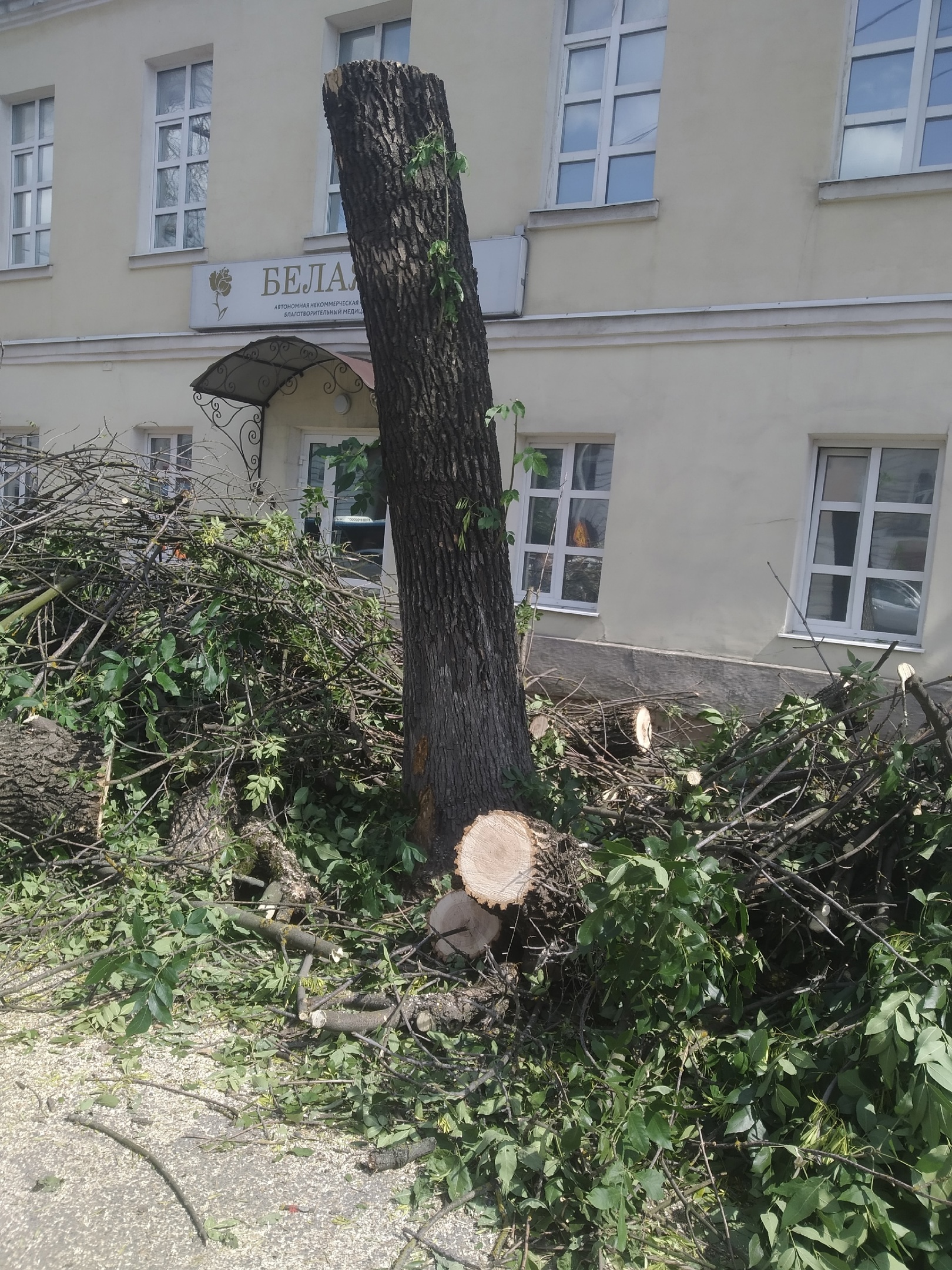 «Я живу в центре (Тверской проспект, дом 15). Все лето ведутся ремонтно — дорожные работы. Попутно удаляется много деревьев. Я очень сомневаюсь, что будут посажены новые.
