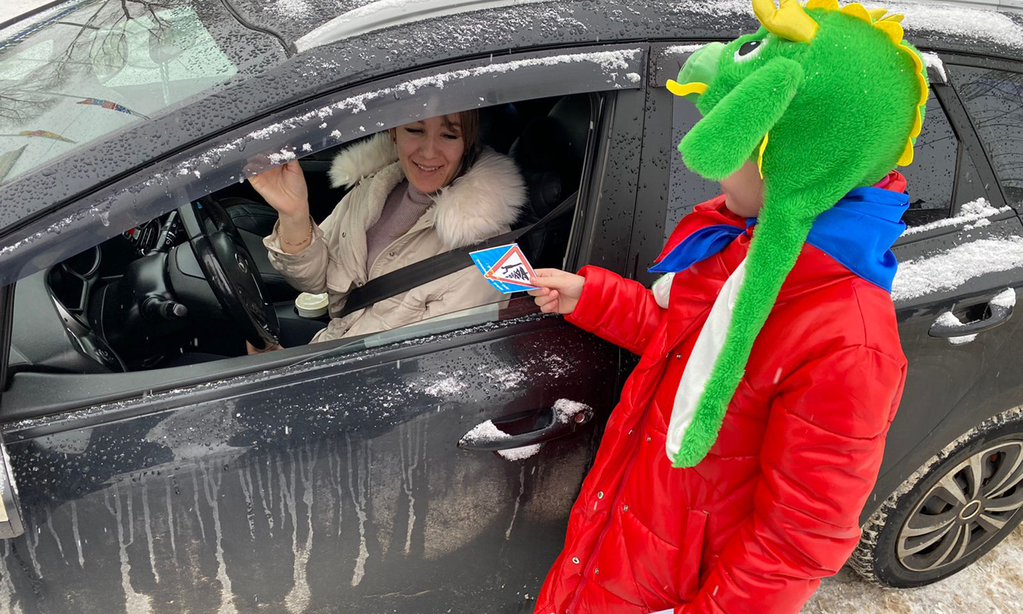 Специально для акции организаторы изготовили открытки-памятки для водителей и пешеходов.
