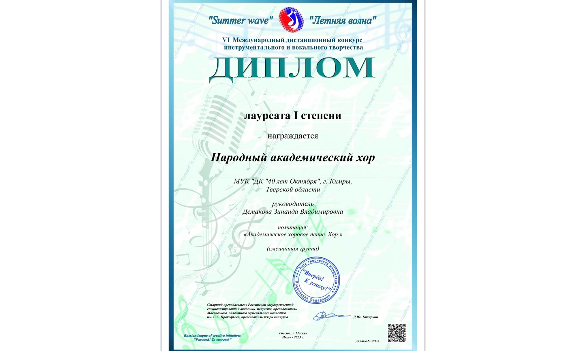 Хор «Русская песня» Кимрского муниципального округа стал лауреатом
