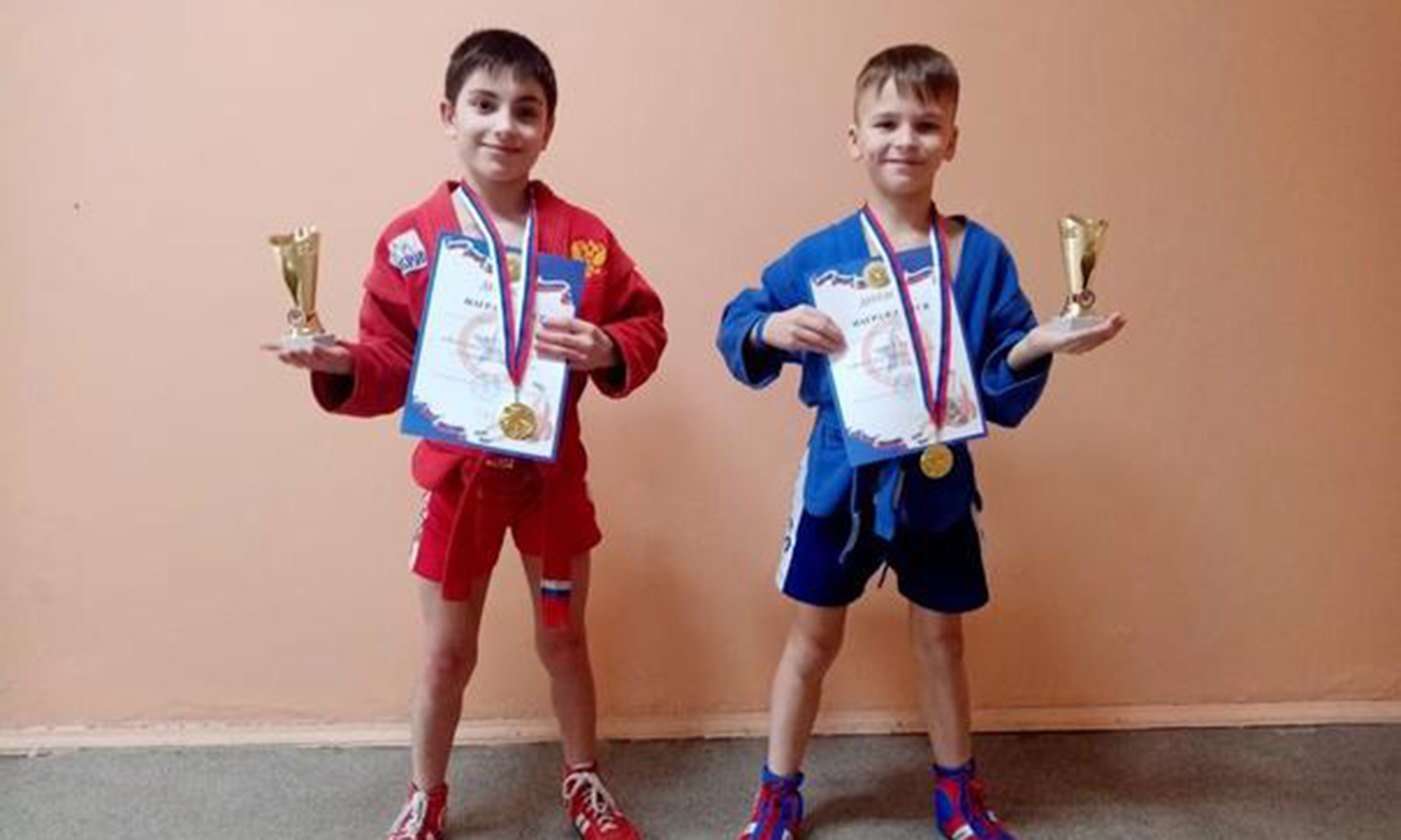 В прошлый раз, в Талдоме, победу одержал Слава, а на этот раз, в Твери, немного посильнее оказался Леон, он и стал в итоге победителем в весе до 46 кг, а Слава занял второе место.