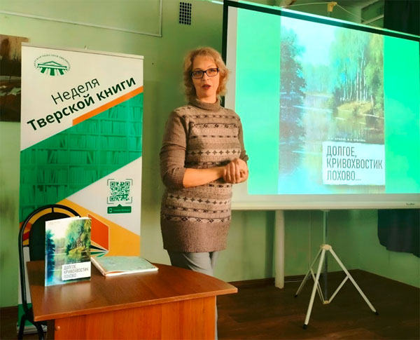 На десерт была запланирована не менее интересная встреча — с автором книги «Долгое, Кривохвостик, Лохово…: Из истории происхождения названий озер Бологовского района» Мариной Андреевной Крыловой. Гостья — кандидат психологических наук, доцент и преподаватель Тверского государственного университета, а также заботливая мама, любящая своего сына Михаила.