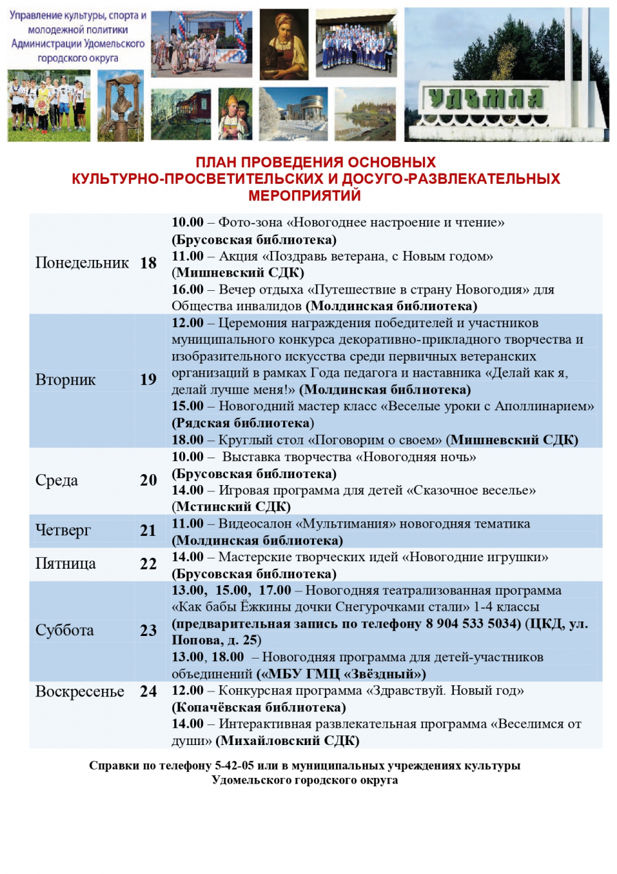 Культурно-просветительские и досуговые мероприятия в Удомельском городском округе на период с 18 по 24 декабря 2023 года