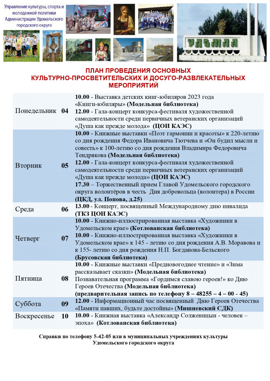 Культурно-просветительские и досуговые мероприятия в Удомельском городском округе на период с 4 по 10 декабря 2023 года