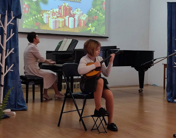 В исполнении юных музыкантов звучали новогодние песни, были исполнены произведения современных авторов и композиторов-классиков, обработки народных песен.