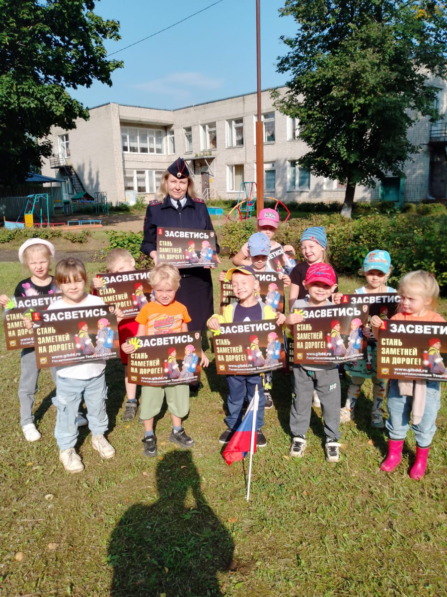 В рамках профилактического мероприятия Месячник дорожной безопасности в Удомельском детском саду «Буратино» совместно с инспектором по пропаганде безопасности дорожного движения провели социальный раунд «Засветись!».