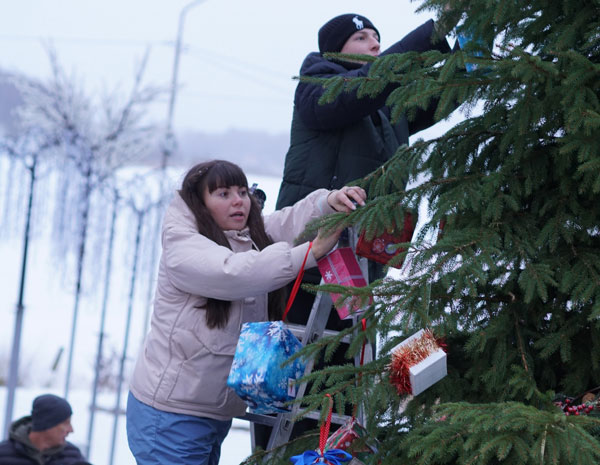 В ходе акции с 20 по 25 декабря сотрудники Администрации муниципалитета, активисты Молодёжного совета и Движения Первых, представители образовательных учреждений и учреждений культуры округа основательно готовились к «Народной ёлке» - закупали и изготавливали ёлочные украшения, писали письма с поздравлениями бойцам СВО и новогодние открытки тепла и добра, а также собирали посылки с тёплыми вещами.