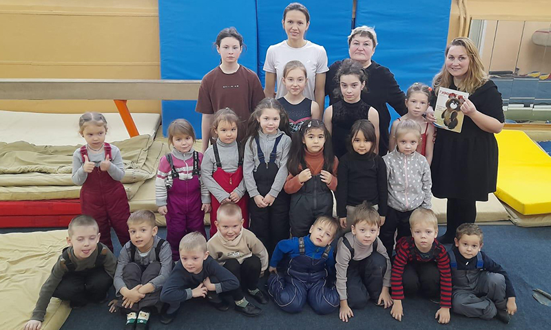 А в конце путешествия Любовь Николаевна и девочки подарили гостям книгу о гимнастике с олимпийским мишкой на титульном листе.