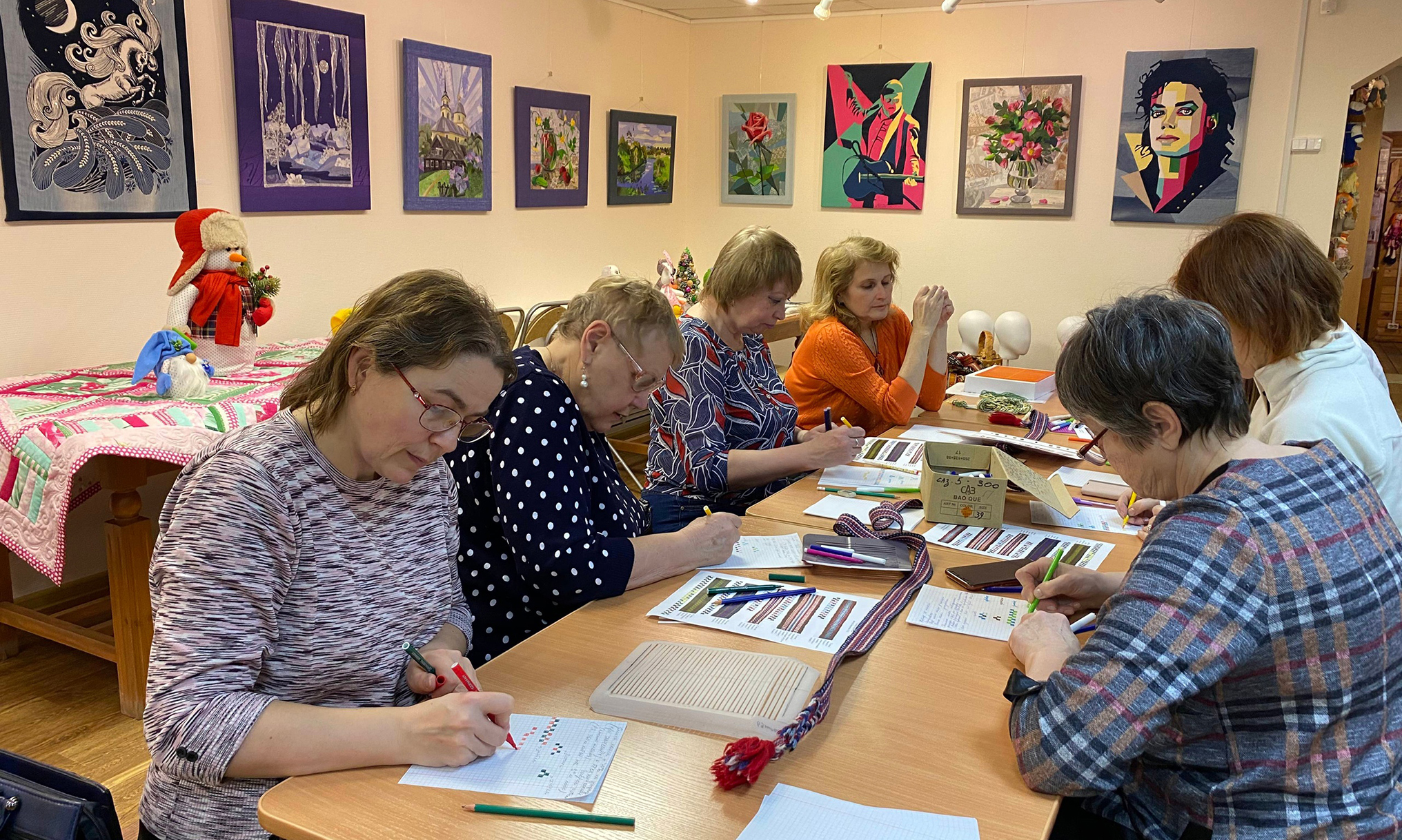 Надежда Евгеньевна Баринова, ведущий специалист по жанрам творчества Тверского областного Дома народного творчества, народный мастер России, ознакомила участников мастер-класса с основами заправного ткачества поясов на бердо. Имея педагогический дар и уникальный талант, Надежда Евгеньевна доходчиво объясняла ученицам все нюансы.