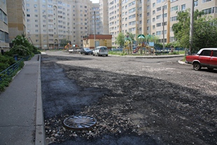 В рамках двух программ площадь замены асфальто-бетонного покрытия составляет свыше 4 тысяч квадратных метров, это несколько миллионов рублей. Две недели назад здесь начали снимать старый асфальт, сейчас приступили к укладке нового.