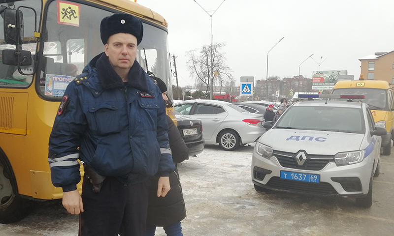 Сотрудники Кимрской Госавтоинспекции рассказали ребятам, как себя вести в школьном автобусе