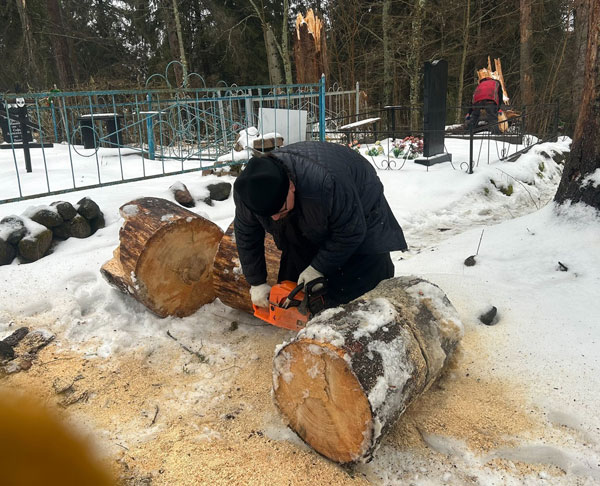 11 января неравнодушные жители Бологовского муниципального округа собрались на расчистку территории кладбища в д. Котлованово. Вековые ели, не выдержав стихии, завалились на захоронения, искорёжив ограды и памятники земляков. Предстояла непростая задача: распилить огромные деревья, сжечь мелкие ветки, вывезти пеньки с кладбища.