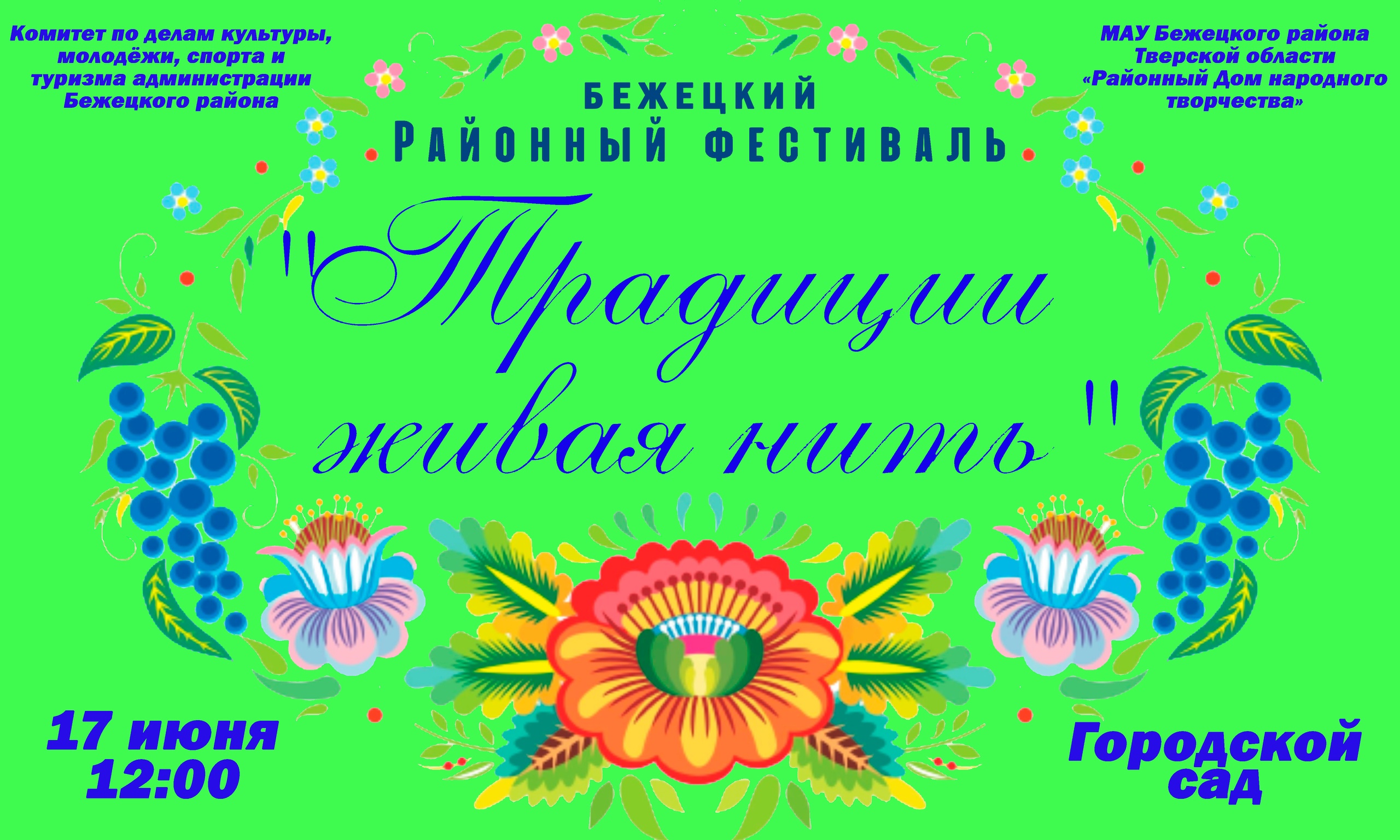 17 июня в 12.00 в Городском саду пройдёт Бежецкий районный фестиваль «ТРАДИЦИИ ЖИВАЯ НИТЬ».
