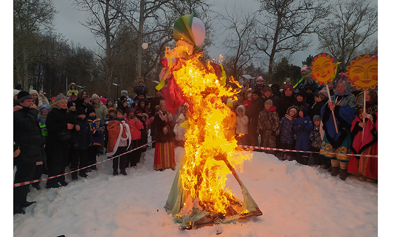 Ответом стала шуточная «похоронная процессия», когда Масленицу в сопровождении скоморохов весело и дружно вперед ногами отнесли на берег Волги к специально огороженному месту, где заведомо стояла пожарная машина.