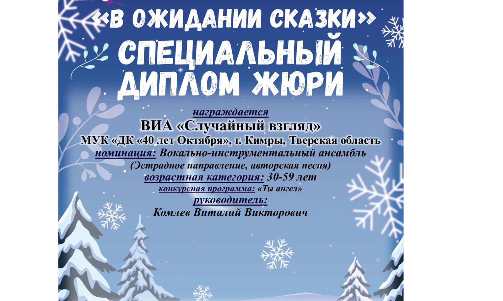 В конце года коллективы ДК «40 лет Октября» приняли участие в IV Всероссийском конкурсе-фестивале творчества и искусств «В ожидании сказки».