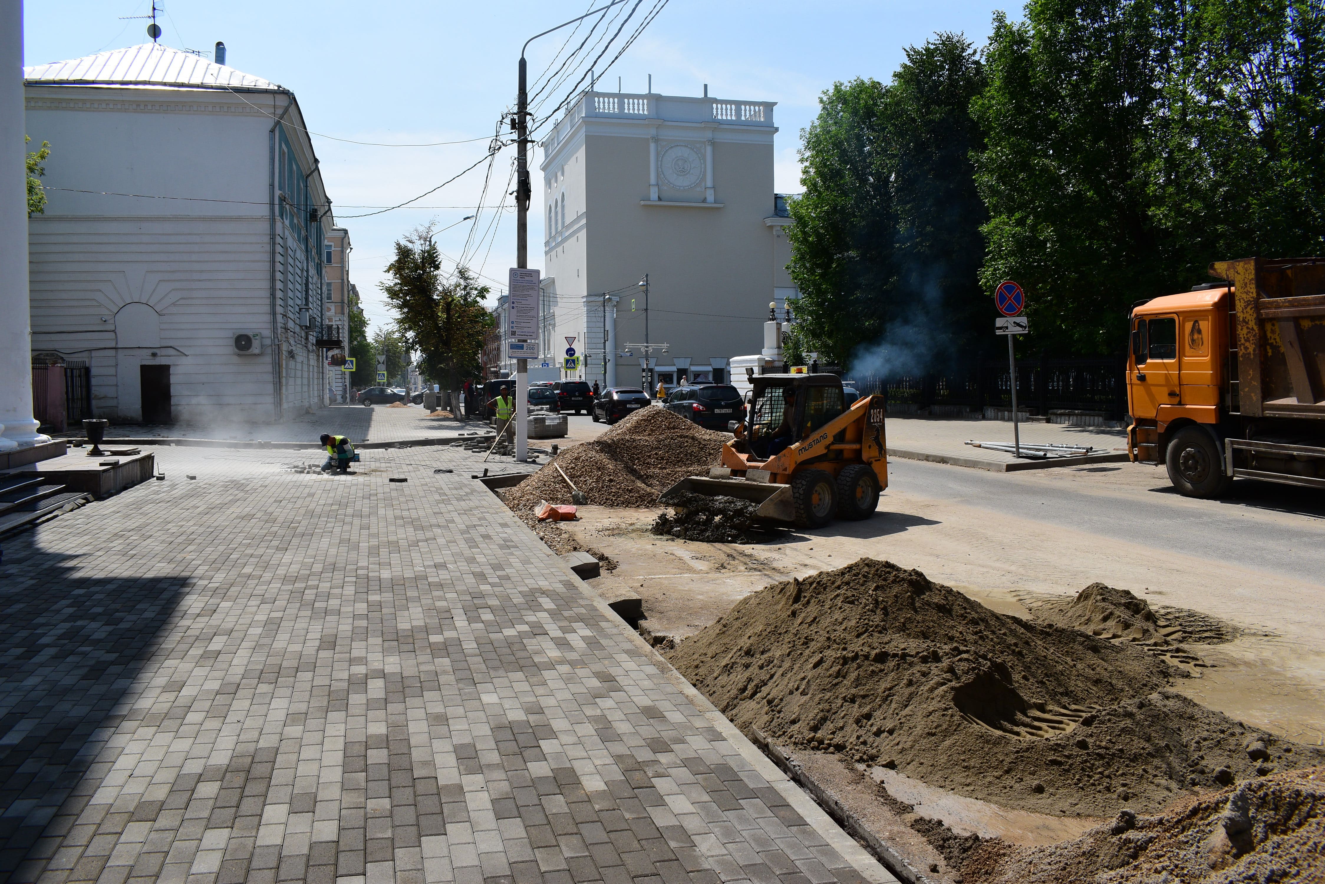 На нечётной стороне проспекта Чайковского завершено устройство основания из песка и щебня, а также установка бортового камня. Также подготовительные работы проводятся по тротуару на набережной А. Никитина (чётная сторона от памятника Афанасию Никитину до Артиллерийского переулка).