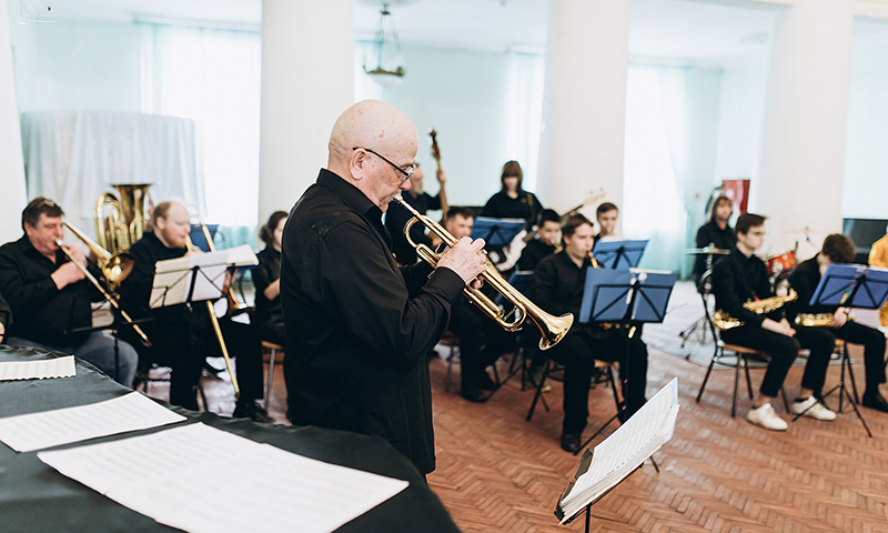 Гостей программы в Колонном зале встречал коллектив народного духового оркестра под руководством Анатолия Константиновича Ямщикова. Посетители ДК с удовольствием слушали известные произведения в исполнении оркестра и даже пританцовывали.
