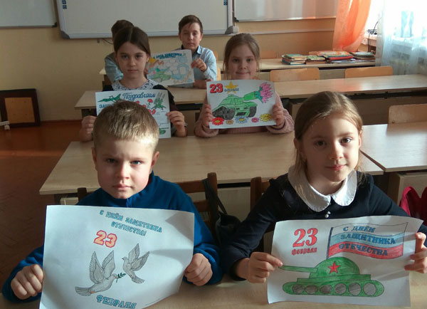 Праздничные открытки-раскраски учеников школы направлены в Центральный Дом Российской Армии имени М.В. Фрунзе.