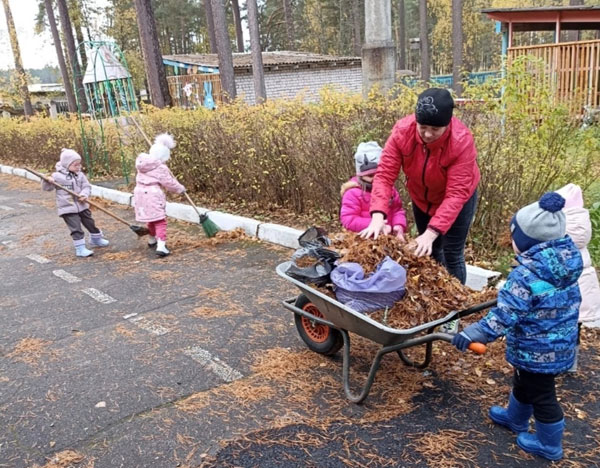 Воспитатели с воспитанниками ясельной и младше-средней групп наводили порядок на территории детского сада. А воспитанники старше-подготовительной группы со своими воспитателями отправились в экологический десант. Ребята с энтузиазмом наравне со взрослыми убирали родной городок и детские площадки, находящиеся на его территории.