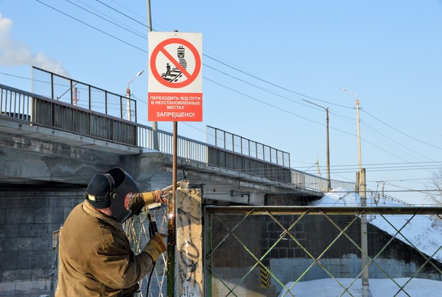 В местах несанкционированных переходов через железнодорожные пути ведётся установка предупреждающих знаков.