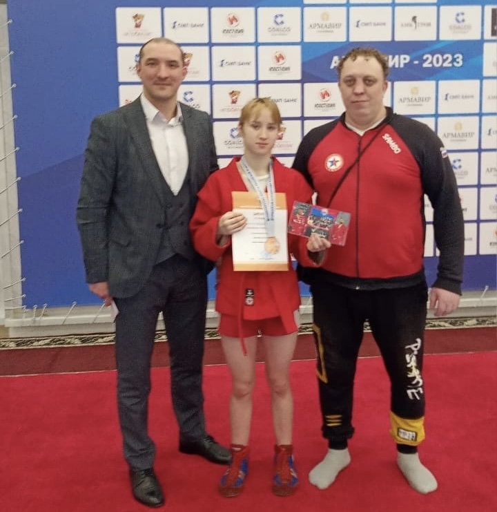 Наша самбистка показала хорошую подготовку, активную и красивую борьбу, легко прошла в полуфинал, в котором встретилась с сильнейшей спортсменкой страны из команды Северного Федерального округа, ставшей в финале победительницей первенства, совсем немного уступив ей за выход в финал по количеству баллов. В итоге девушка стала бронзовым призером Первенства России.
