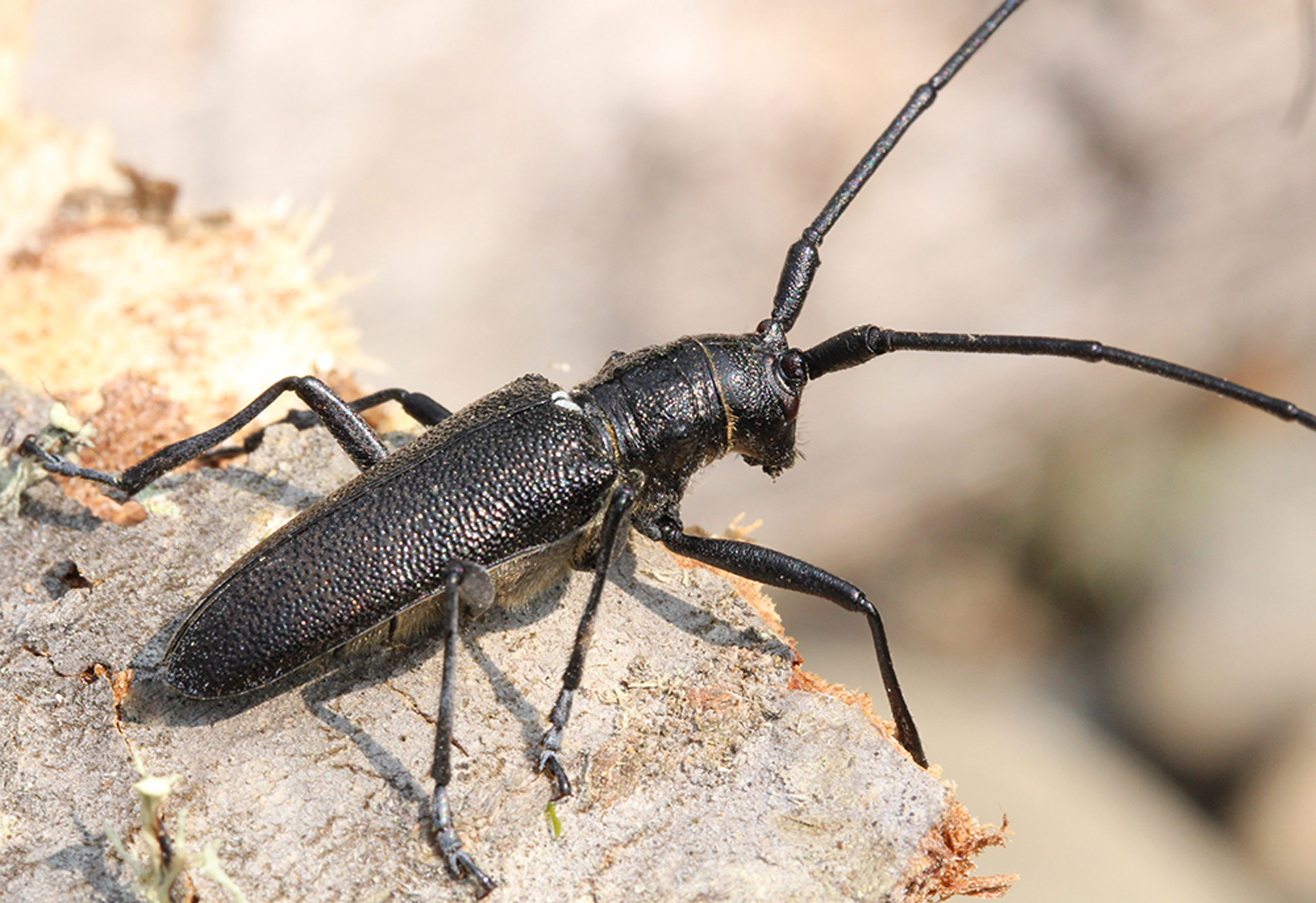 Малый черный еловый усач Monochamus sutor L. – один из самых опасных вредителей еловой и пихтовой древесины. Часто поселяется на порубочных остатках, повреждает неокоренные лесоматериалы, очень быстро приводя их в полную негодность.