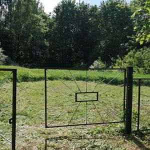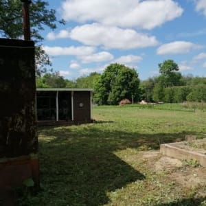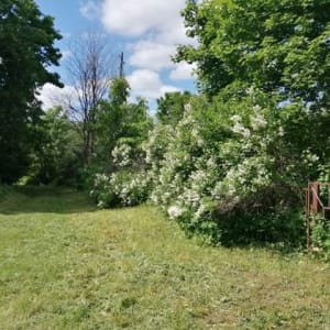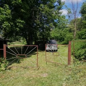 Участок 25 соток все вокруг мое.Гараж металлический ,туалет уличный,летняя кухня .Вода чистая скважина, электричество, газ в проекте . Лес ,река. Яблони ,малина на участке.Один сосед.Асфальт почти до дома.Сам участок тихий.Пруд. Торг
