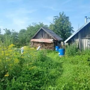 На участке есть баня с новым котлом, колодец на 14 или 17 колец (есть ли в нем вода загадка каждого года, но если воды нет, то в деревне есть колодец и пруд метрах в 150 от дома), сараи, поленница, плодовые деревья (3 вида яблонь, слива, вишня), ягоды (смородина, крыжовник, малина), земля разработана по всему периметру, урожай каждый год был.